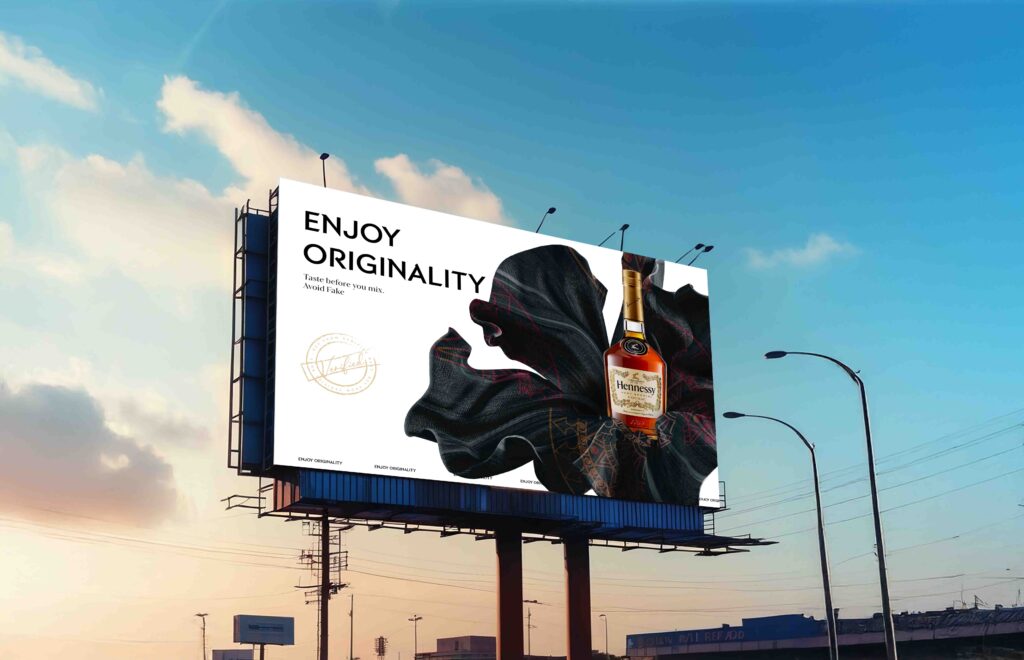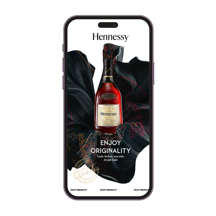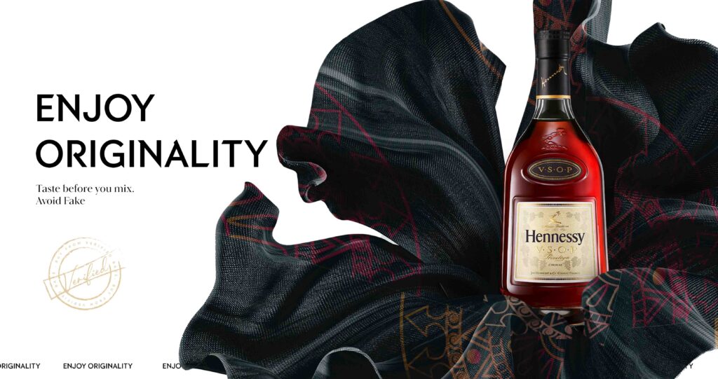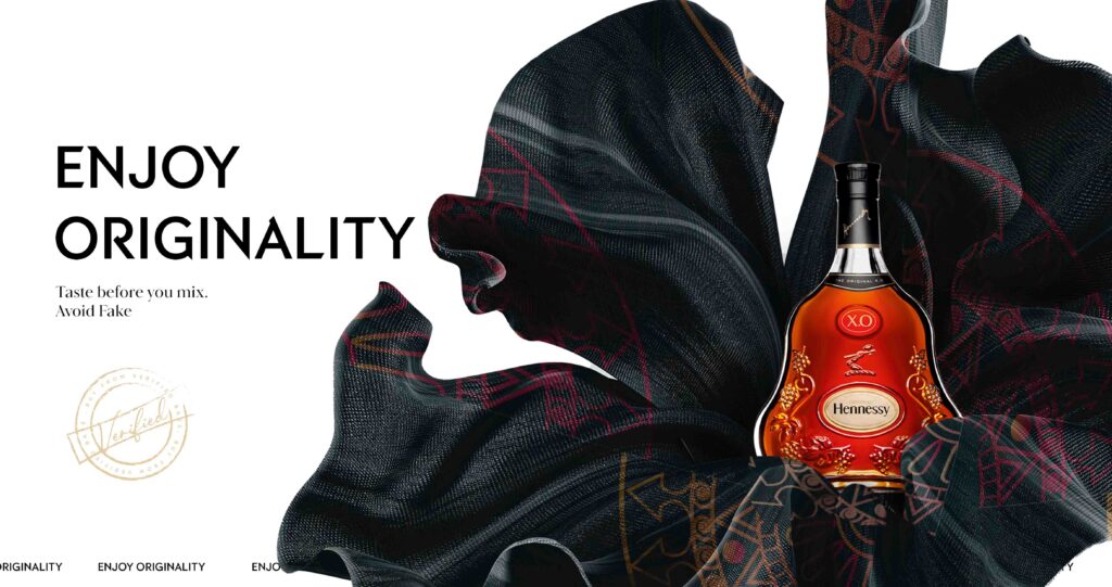 This ideaspace celebrates Hennessy for being a real and genuine cognac whiskey with distinguishable taste of Real hennessy while emphasizing originality of Hennessy drink and avoiding counterfeit products.